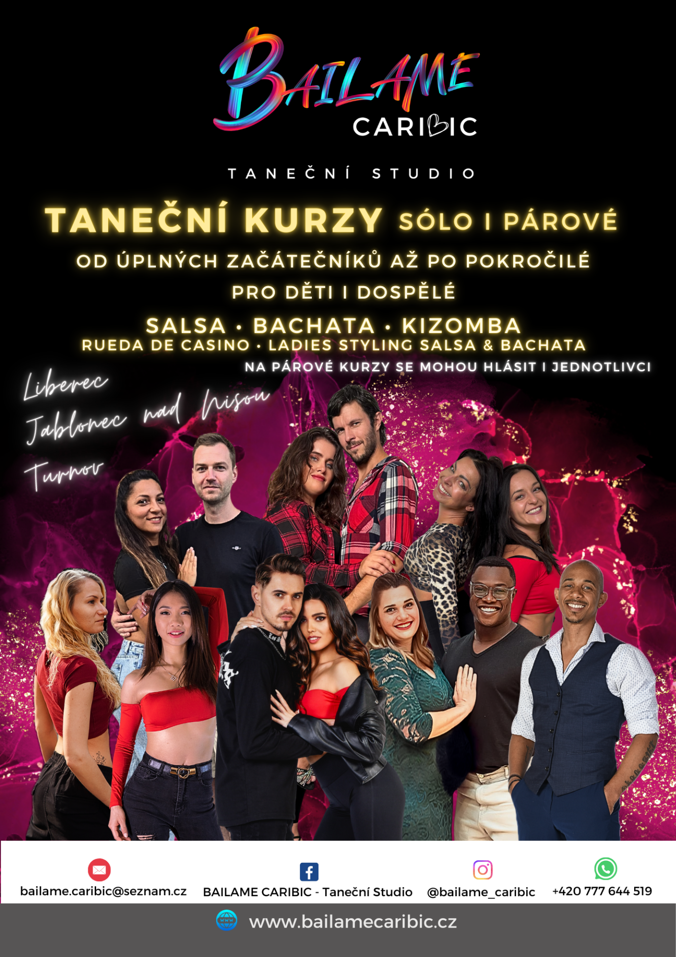 Pro každého z Vás jistě najdeme to pravé, stačí jen mít chuť se hýbat v rytmu krásné hudby a hodit za hlavu všechny starosti všedních dnů. Nemusíte být dokonce ani pohybově nadaní, naučíme tančit každého. Těšíme se právě na VÁS!