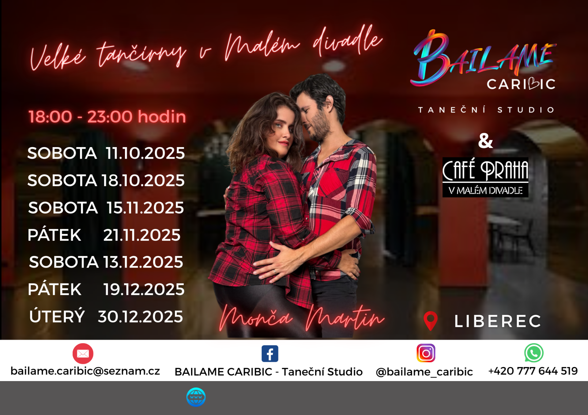 Hrát budeme salsu, bachatu a kizombu v čase 18,30 - 22,00 hodin (když to půjde, tak i o chvilku déle). Přijďte
