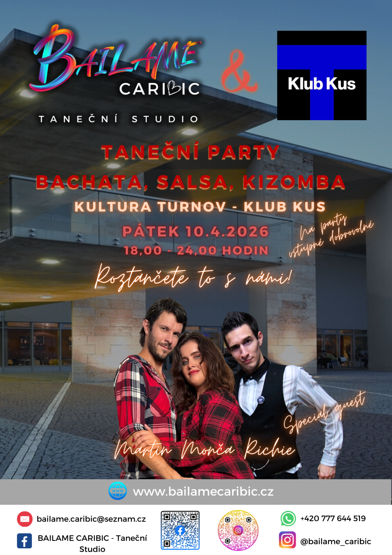 Zveme vás na další nezapomenutelnou tančírnu v turnovském Klubu Kus, kde si užijete večer plný vášně, rytmů a skvělé atmosféry! Těšíme