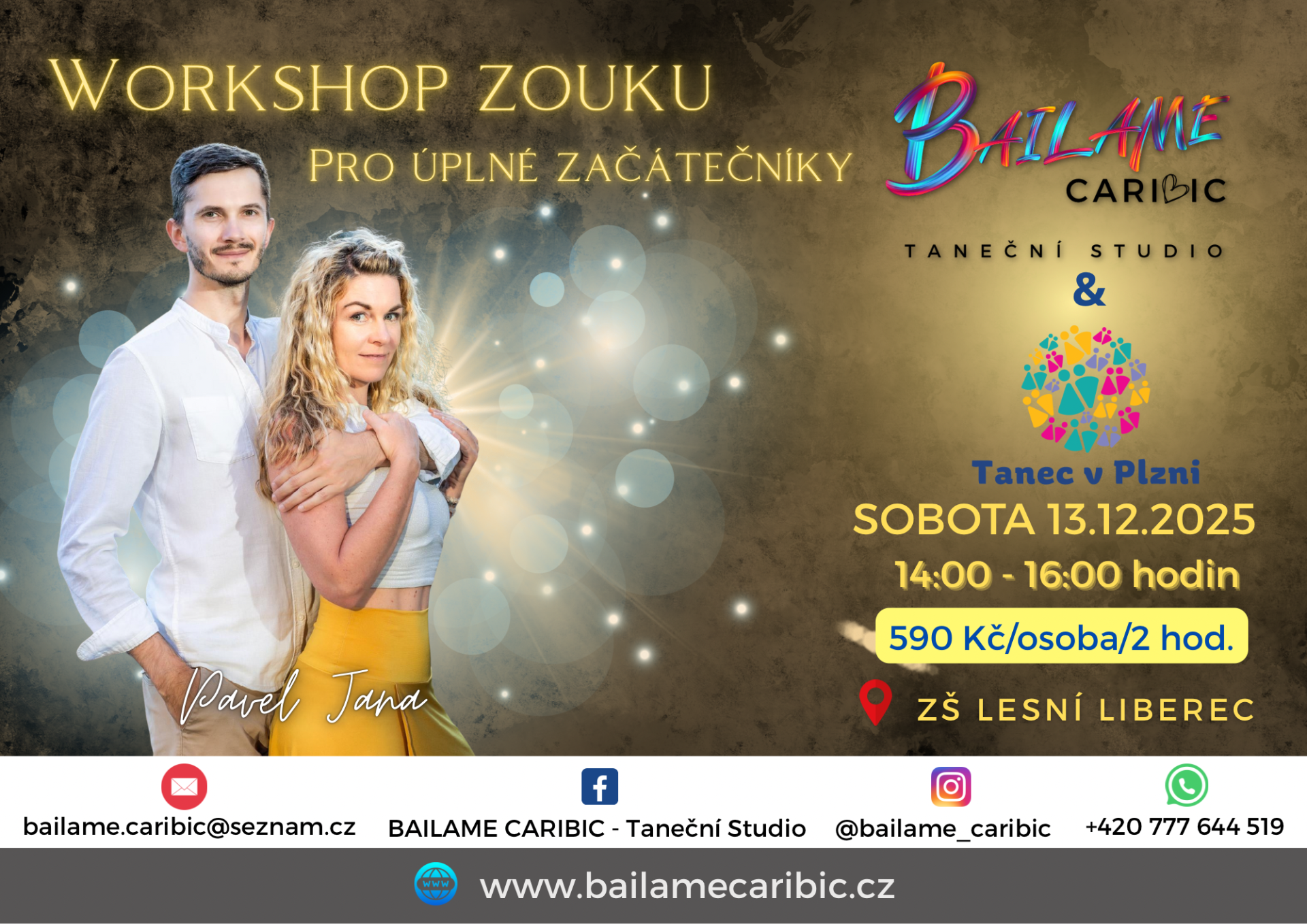 Workshop zouku pro začátečníky s úžasnými lektory z Plzně Janou Kučerovou a Pavlem Sherinem!